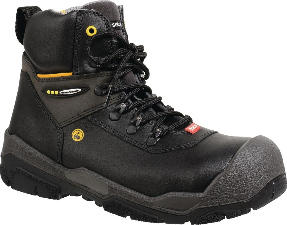 nach DIN EN ISO 20345:2011 · S3 SRC CI HRO HI · robuster, bequemer mittelhoher Sicherheitsstiefel mit höchstem Schutz (S3) für härteste Außenbereiche · der wasserabweisende und antistatische PU-beschichtete Lederschuh schützt den Fuß · mit JALAS® Alu-Zehenschutzkappe · die öl- und hitzebeständige Nitril-Außensohle mit breiter Passform bietet hervorragenden Grip und zusätzlichen Platz · Stahl-Durchtrittschutz und integrierte Dämpfung aus PORON® XRD®