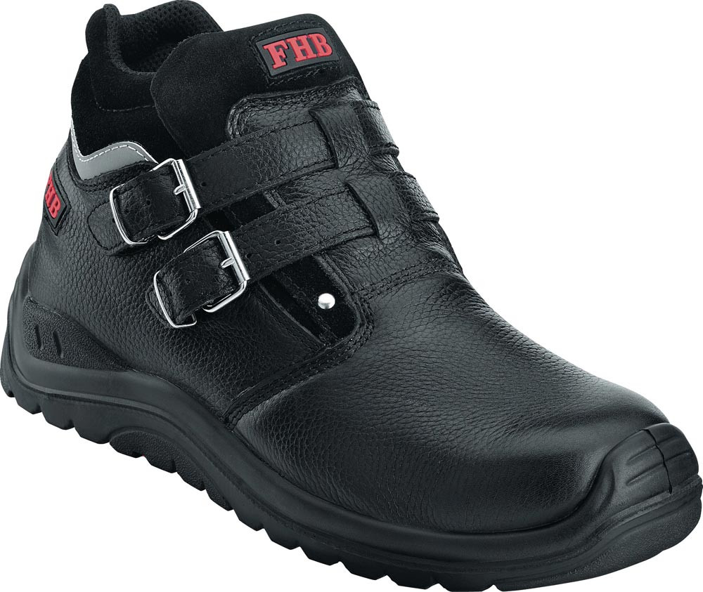 nach DIN EN ISO 20345 · S3 HRO · Obermaterial: Kuhleder · Nitril-Langkeilsohle · bis 300 °C hitzebeständig · nicht kreidend · durchtrittsichere textile Sohle · Kunststoff-Kappe · atmungsaktives Innenfutter und Einlegesohle · Weite 11