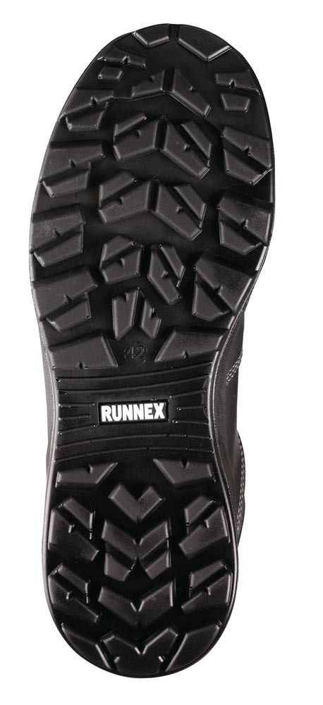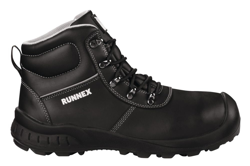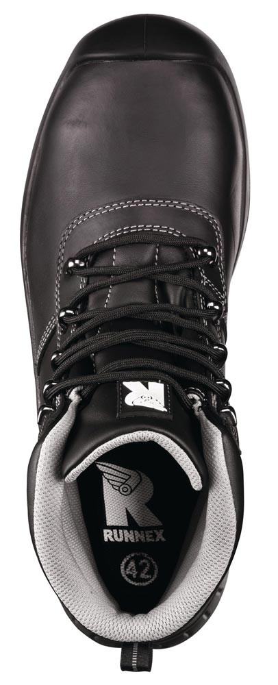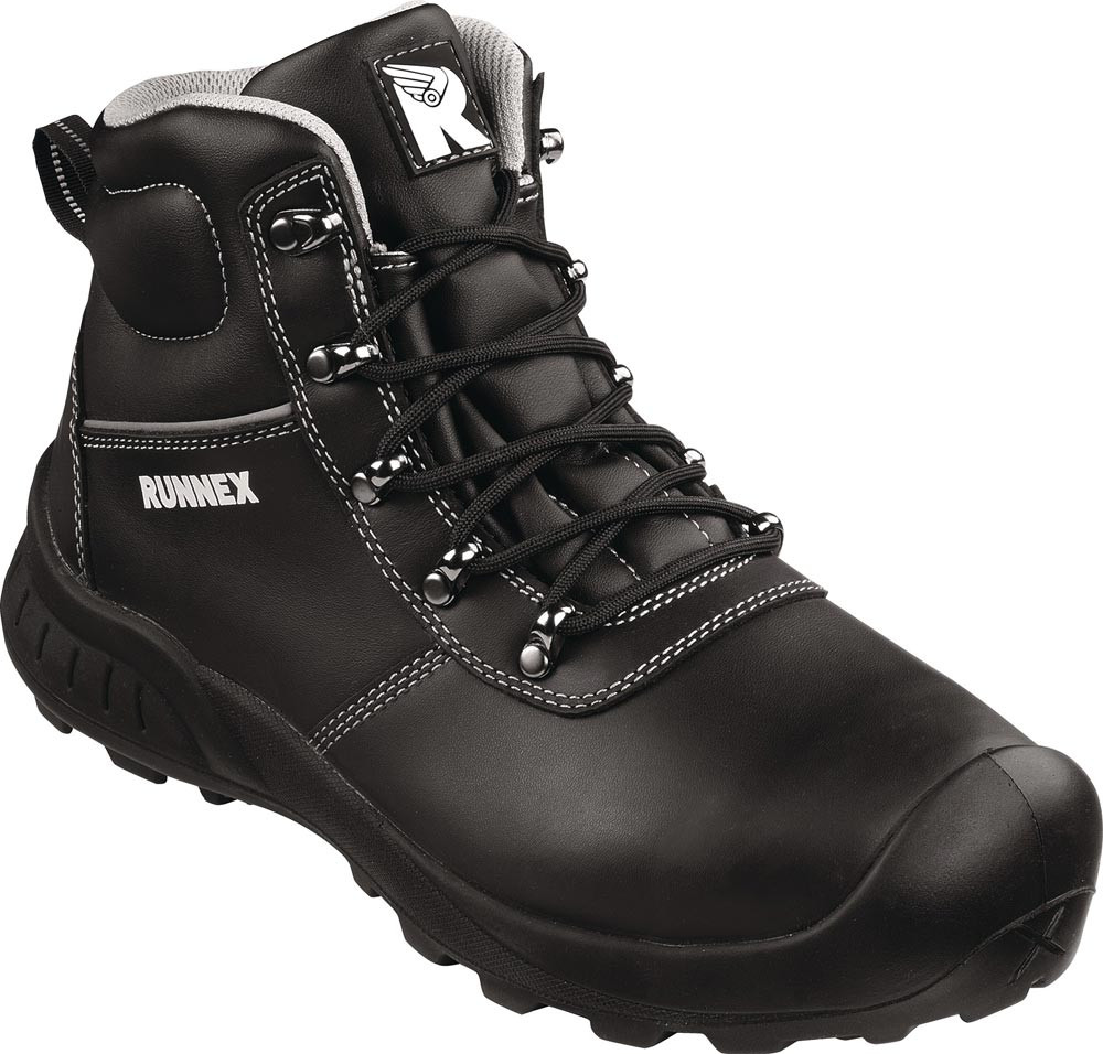 nach DIN EN ISO 20345:211 · S3 SRC · Obermaterial: hydrophobiertes Glattleder · RUNNEX® Alu-Protection Überkappe · Durchtrittschutz, metallfrei · atmungsaktive, ganzflächige Einlegesohle zum Auswechseln aus Poliyou® · atmungsaktives RUNNEX® AIRSTREAM-Funktionsfutter · PU Laufsohle (schwarz), hitzebeständig bis ca. 200°C, nicht kreidend · RUNNEX® EVA-Dämpfungssystem · Weite 11 · nach DGUV 112-191 · Einsatzschwerpunkt: Die Sicherheitsschuhe garantieren hohen Komfort, größte Stabilität und hohen Schutz gegen Stürze durch Ausgleiten. Sie sind universell einsetzbar, wie z. B. in der Industrie, Handwerk, Innen- und Außenbereiche
