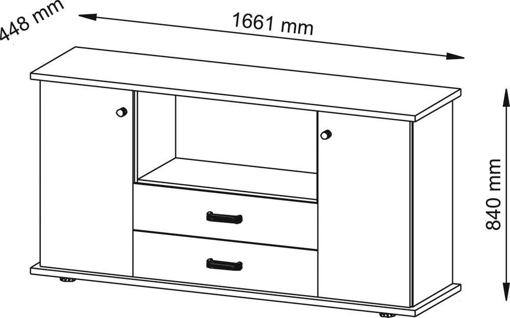 Sideboard, BxTxH 1661x448x840 mm, 2 Zwischenwände, 2 Holztüren, 1 Boden, 2 Schubladen, lichtgrau