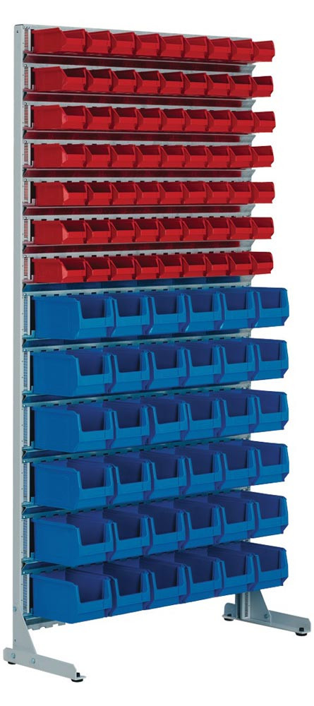 Ständerregal einseitig H2010xB1010xT400mm 63 x MK5 rot, 36 x MK4 blau lichtgrau, RAL 7035 E6461850