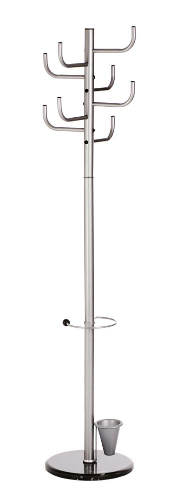 Standgarderobe, Durchm.xH 375x1720 mm, 8 Mantelhaken, Schirmständer, aus Metall mit Mamorfuß, silber