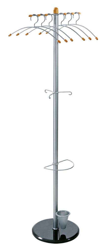 Standgarderobe, Durchm.xH 375x1720 mm, 8 Mantelhaken, Schirmständer, aus Metall mit Mamorfuß, silber EP519457
