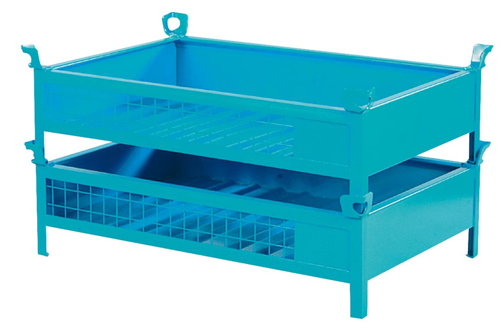 Stapelbehälter, Stahl, Traglast 700 kg, Gitter vorne, Fangecken, LxB 1070x870 mm, Füll-/Stapelhöhe 200/380 mm, verzinkt EP526342