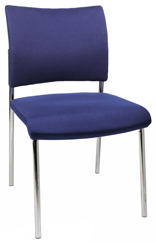 · Ergonomisch geformte und gepolsterte Rückenlehne, Rückseite mit kaschiertem Stoff · Bequem gepolsteter Muldensitz mit abgerundeter Vorderkante · Verchromtes Vierfußgestell aus Rundrohr Ø 22 mm · Kunststoff-Fußgleiter · Stapelbar bis zu 2 Stühlen · Armlehnen optional gegen Aufpreis lieferbar · VE 2 Stück