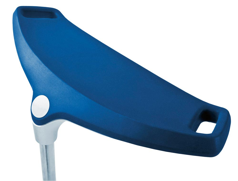 Stehhilfe mit schwenkbarer Sitzfläche, Sitz Höhe 620-850 mm, Sitz PU-Schaum, blau