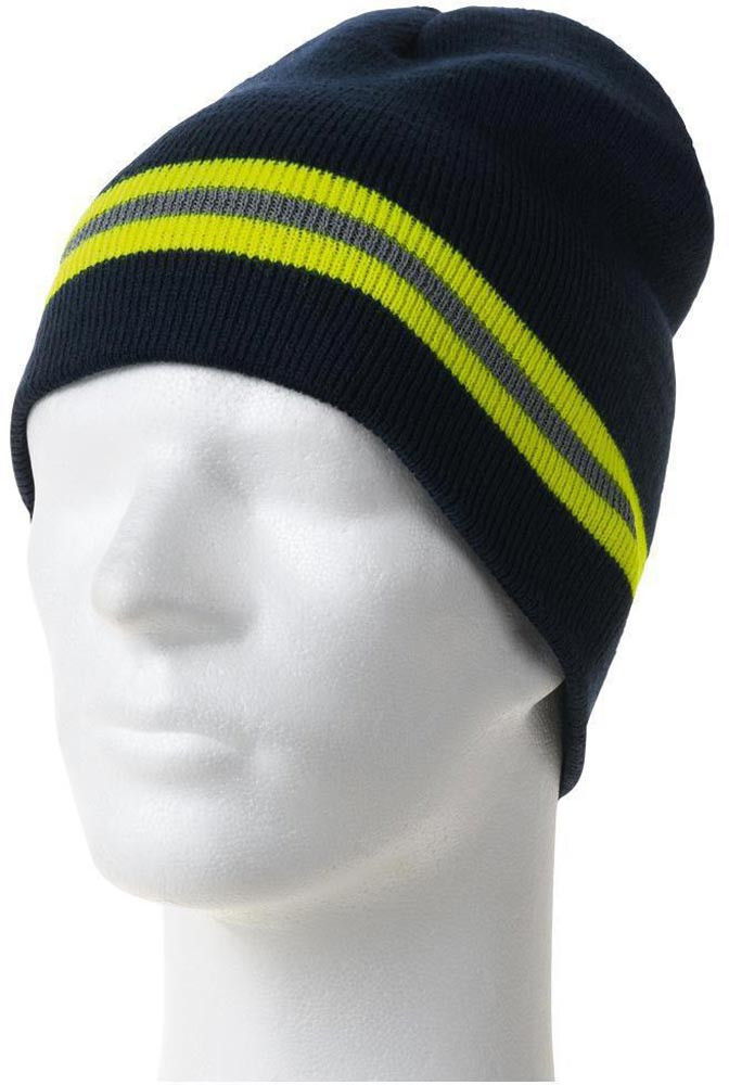 Obermaterial: 100% Polyacryl · marine, fluoreszierend gelb abgesetzt · reflektierender Streifen