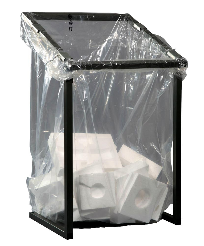 ∙ Steckbares Quadratrohrgestell aus Stahlblech ∙ Stabil und standfest ∙ Zerlegte Anlieferung ∙ Einwurföffnung: 660 x 660 mm ∙ Geeignet für Industrie und Gewerbe, wo viel großvolumiger Abfall wie Styropor® oder Kartonagen anfällt · Für 1000 Liter Styropor-Sammelsäcke