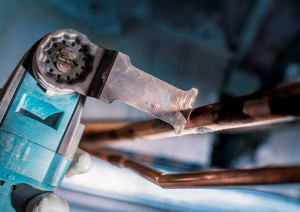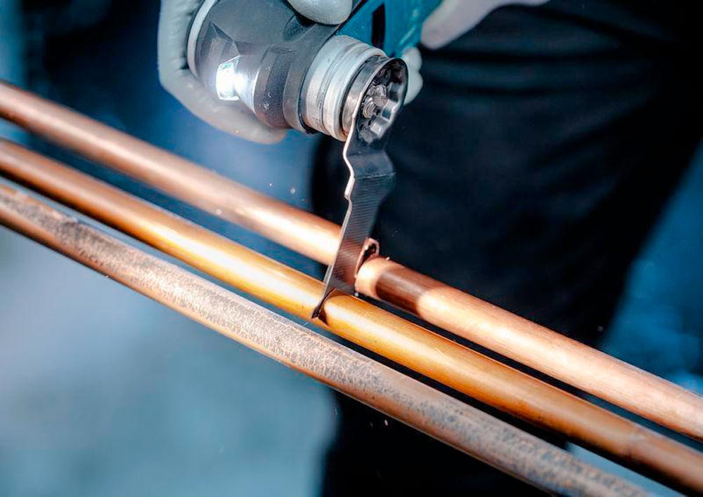 zum problemlosen Schneiden in ungehärteten Metallen · herausragende Lebensdauer in weichem Metall · Bi-Metall Blatt: kombiniert harte Zähne mit flexiblem Blattkörper · ideal um an schwer zugängliche Stellen zu gelangen und alte Rohre aus Nichteisenmetall und Formstücke abzutrennen – präzise und ohne zusätzlichen Arbeitsaufwand · aus BI-Metall mit beschichteten Zähnen