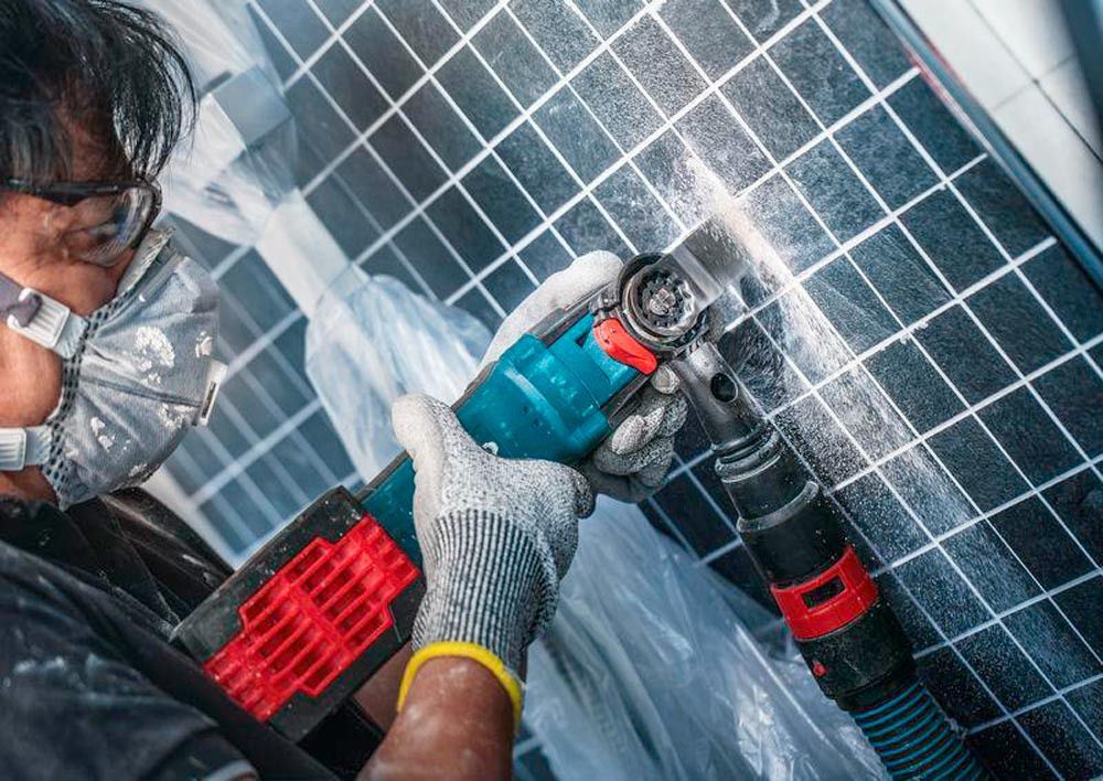 zum Entfernen von Fliesen und abrasive Materialien · duales Design: erledigt die Arbeit von zwei Standardblättern · erreicht die Fugen auch um kleine Fliesen herum und ermöglicht sauberes Abschleifen alten Mörtels · robustes Carbide-Korn