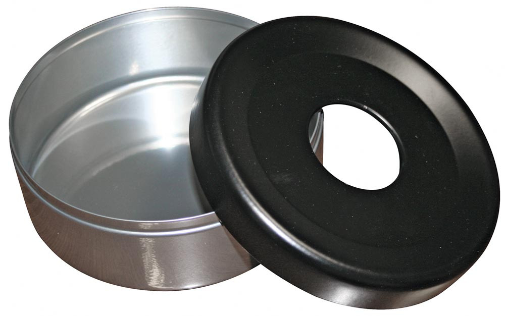 Tischascher, Durchm.xH mm 150x70 mm, Vol. 1 Liter, Behälter neusilber, Deckel RAL 9005 schwarz