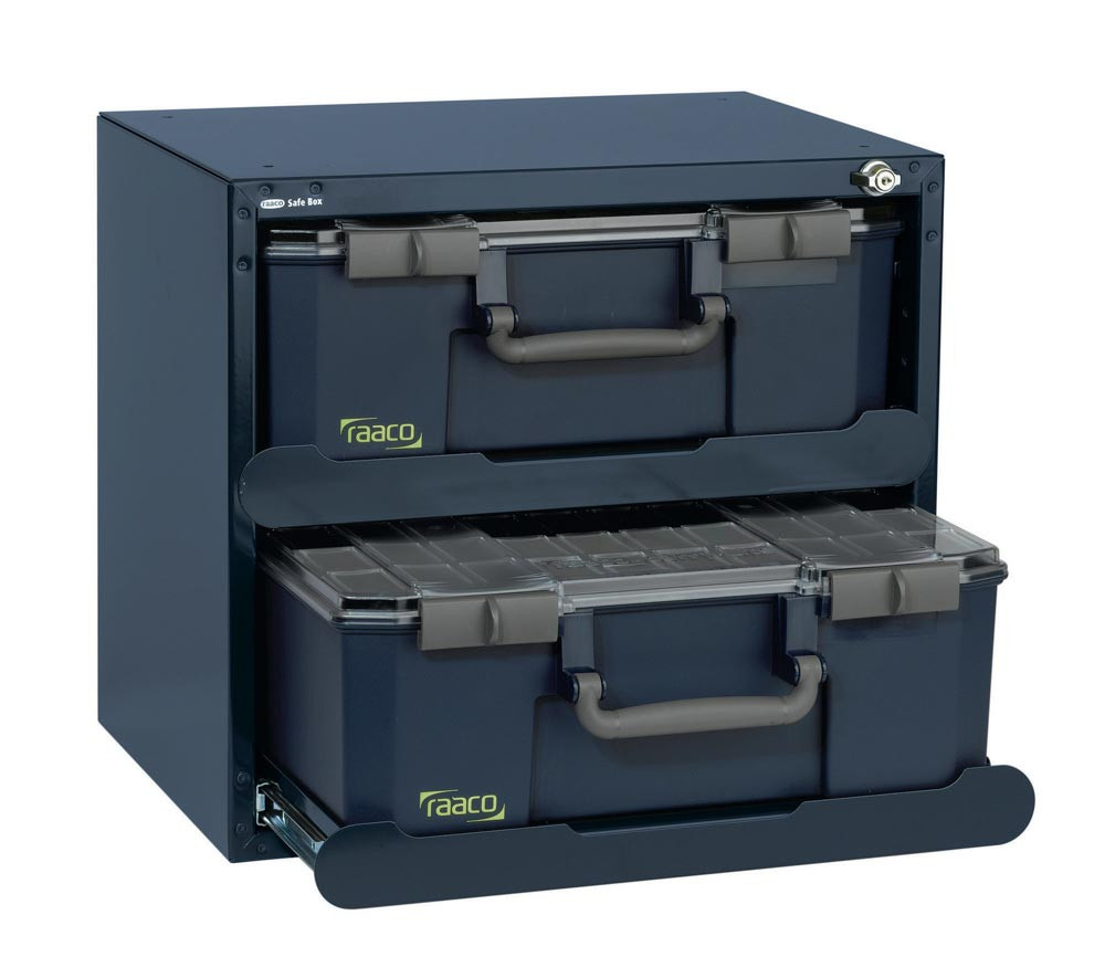 Tresor SafeBox 150x2 (bestückt) B.451xT.330xH.403mm Stahlgehäuse m.2 Sort.-kästen 871533 m.Schloss u.Teleskopschienen