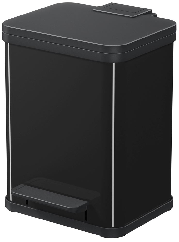 ∙ Rechteck-Gehäuse mit einzelnen Inneneimern zur Mülltrennung ∙ Stabil und standfest ∙ Deckel aus hochwertigem Kunststoff in schwarz mit Vertiefung zur Kennzeichnung der Abfallsortierung, inkl. Farbsticker zur Müllsorten-Kennzeichnung · Gedämpfter Deckel-Schließ-Mechanismus - Deckel schließt leise · Großer Öffnungswinkel zum leichten Befüllen · Ergonomischer Tragegriff im Deckelscharnier integriert · Ergonomisch breites Fußpedal · Innenliegende, hygienische Tretmechanik · Standfest durch breiten Bodenring