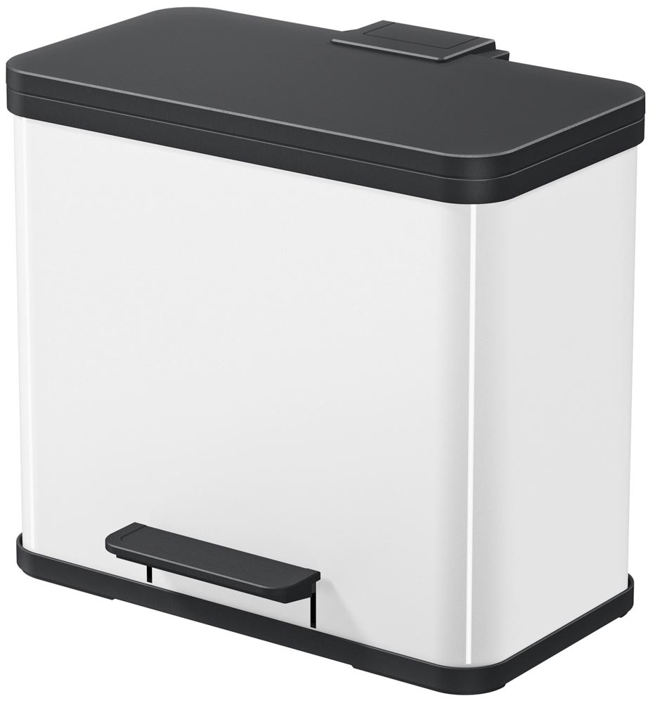 Tret-Abfallsammler, Volumen 3x9 l, BxTxH 470x340x430 mm, Gehäuse Stahlblech weiß, Kunststoff-Deckel schwarz mit Soft-Close EP551943