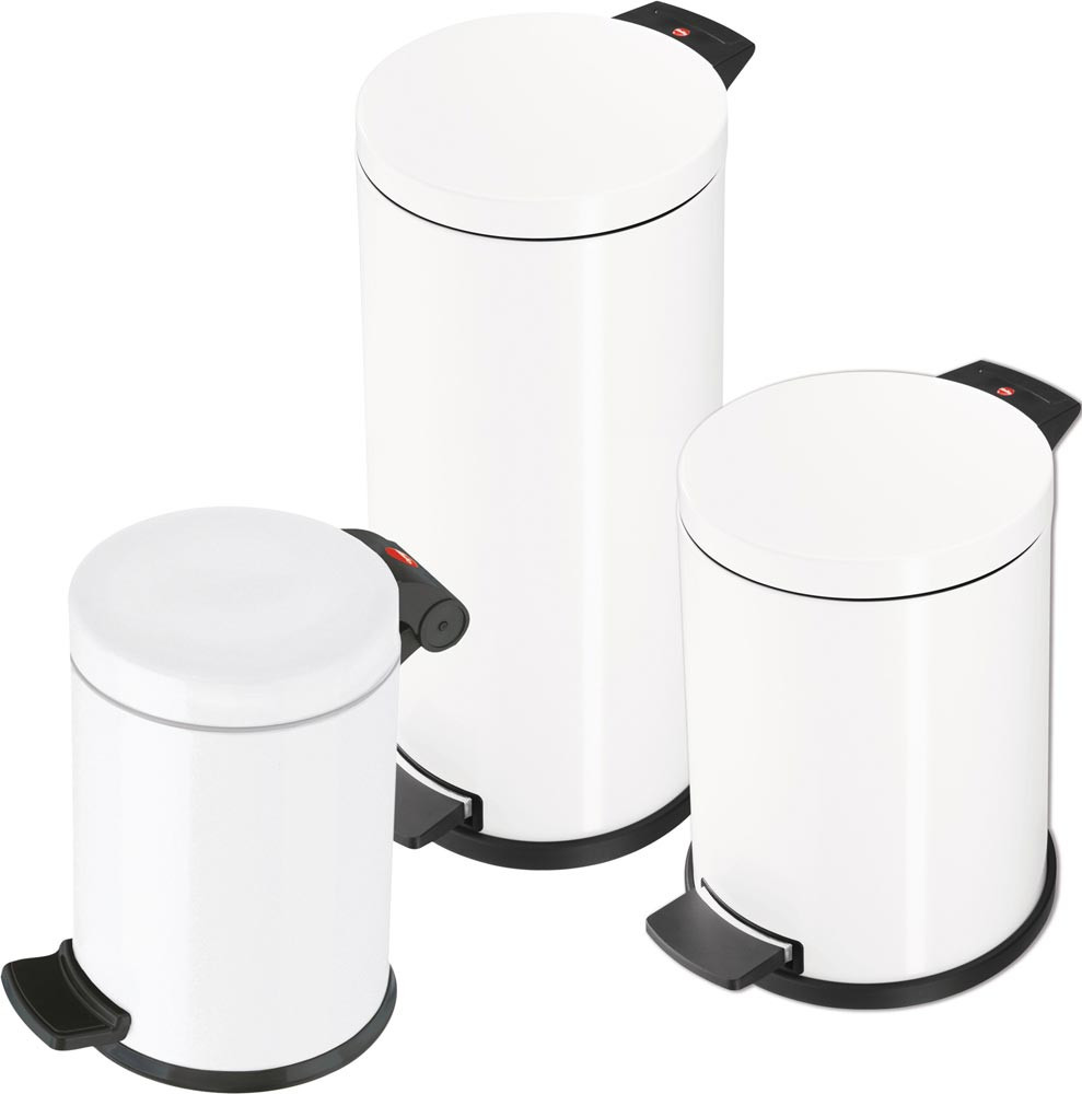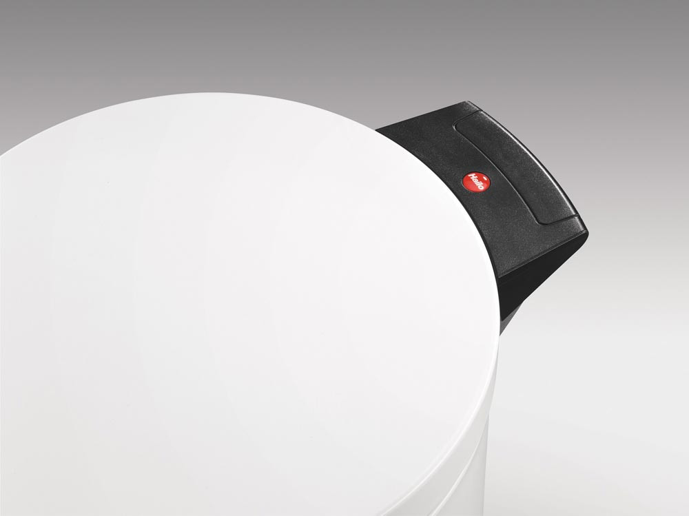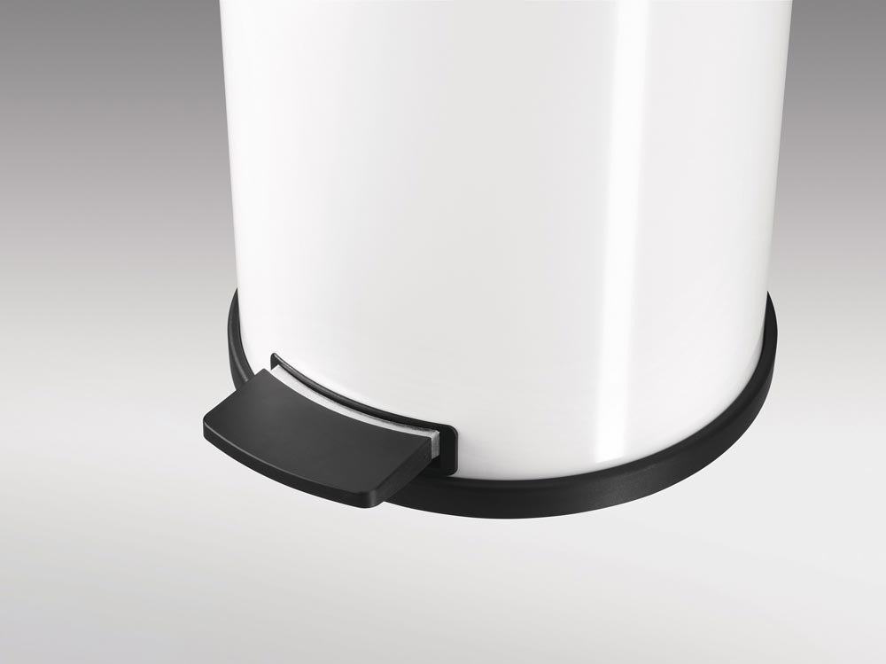 Gehäuse und Deckel Stahlblech · mit verzinktem Inneneimer · geräuscharmes Schließen des Deckels · große Standfläche mit drei Anti-Rutsch-Füßen · innenliegende Tretmechanik