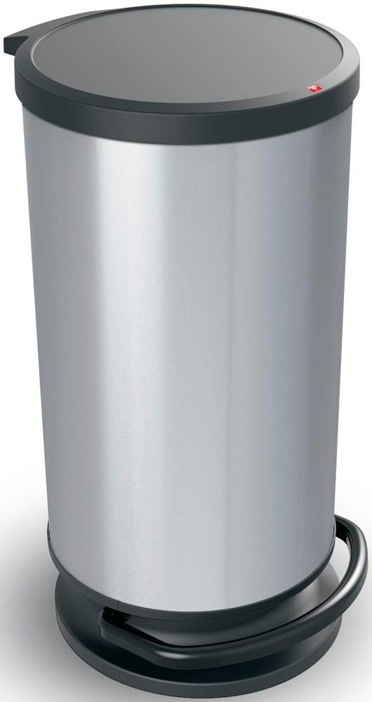 robusten Konstruktion aus flexiblen Kunststoffen · edler Metallic-Look · Dämpfer für sanftes und geräuschloses Schließen · Pedal für einfaches Öffnen · mit Gummifüße für ein festen Stand