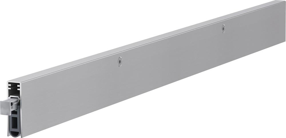 für Holztüren · Auslösung 1-seitig · Aluminiumgehäuse · silberfarben eloxiert · Dichtungshub 18 mm stufenlos einstellbar · in 3 Positionen anschlagbar · Standardlängen um 125 mm kürzbar · mit Zubehör 5145