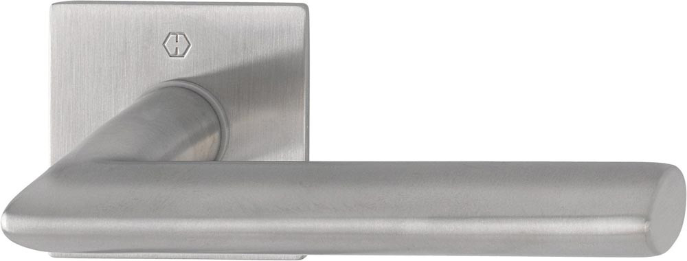 Hoppe-SchnellstiftPlus-Edelstahl-Flachrosetten-Türgriff-Garnitur ohne Schlüsselrosetten für Innentüren · mit Hoppe Vollstift (Stift-/Lochteil) · geprüft nach DIN EN 1906:37-0140U (Gebrauchs-Kategorie Klasse 3) · Lagerung: Türgriff lose, wartungsfreie Gleitlager · aufsteckbare Edelstahl-Griffrosetten mit durchgehenden Stütznocken · für Türstärke 35-45 mm · Drückerlänge 131 mm · Drückertiefe 61 mm · DIN links / rechts · Besonderheit: schrauben- und werkzeuglose Montage, 2 mm flache quadratische Rosetten