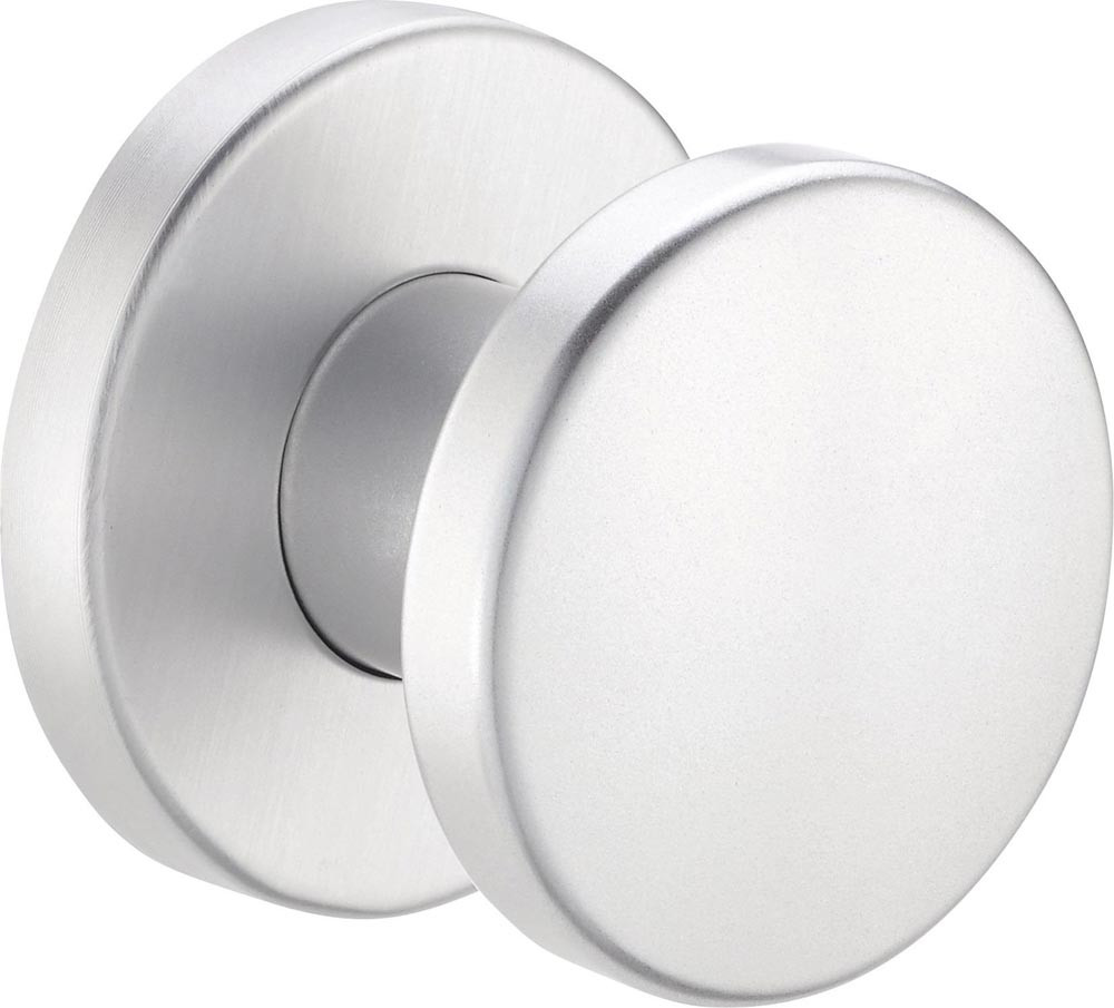aus Edelstahl · auf runder Rosette · gerader Knopf · Rosetten-Ø 55 mm · Höhe 41 mm · Rostetten-Stärke 8 mm · Schraublochabstand 38 mm