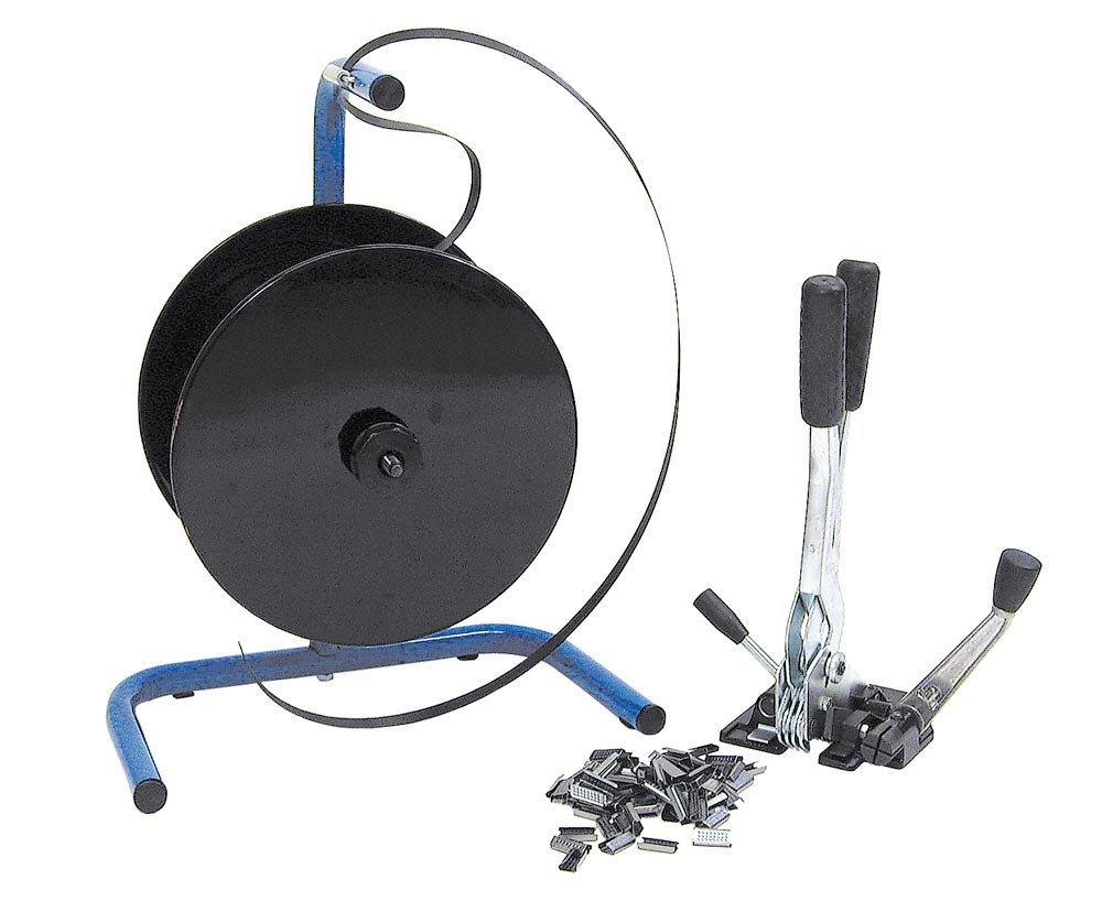 Umreifungs-Komplett-Set, PP 13 mm, Spann-Verschlussgerät, 500 Meter Band, 2000 Hülsen, 1 Abrollständer EP510321