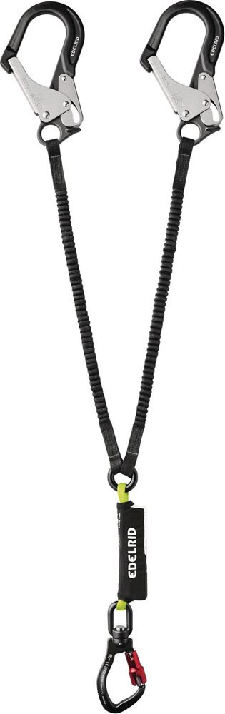 Y-Verbindungsmittel mit elastischen Armen, integriertem Bandfalldämpfer und großen Alu-Handballenkarabinern · für die Anwendung im Gerüstbau sowie zum Sichern und Fortbewegen an Anschlagpunkten bzw. Strukturen und zum Fortbewegen an Lifelines inkl. Passieren von Zwischensicherungen · ANSI zertifiziert · Aufreißlänge des Falldämpfers: 160 cm · kantengeprüft nach RFU 11.075 und somit zugelassen für horizontale Anwendungen · hohe maximale Nutzlast (140 kg) · integrierter Wirbelkarabiner für die Gurtanbindung · große Alukarabiner mit 64 mm Öffnungsweite · zugelassen für 60 - 140 kg