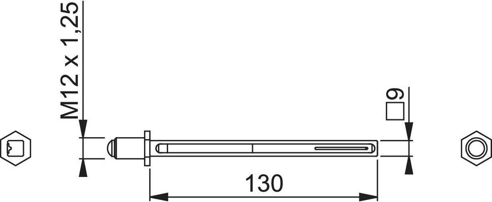 Vierkantstift STI-PRV-FDW-M12 Vierkantmaß 9mm L.130mm verzinkt M12x1,25mm