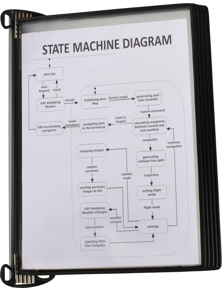 Komplett-Set · mit Aluminiumschiene · mit T-Clip zur Befestigung (ohne Werkzeug) der Aluminiumschiene an allen Aluprofilen mit 8er oder 10er Nut · Befestigung mit Schrauben (nicht im Lieferumfang enthalten) oder Magnetband · schnell einsatzbereit durch Neodym-Magnete, für ein schnelles austauschen der Tafeln · Sichttafeln PP mit kunststoffummanteltem Stahldraht · starke Metalldrehzapfen · mit Easy-Load Öffnungssystem, die fordere Folie wird unter einen Eckverschluss geschoben · für eine Aufnahme von bis zu 20 Blätter · mit 5 Sichttafeln bzw. 10 Sichttafeln schwarz