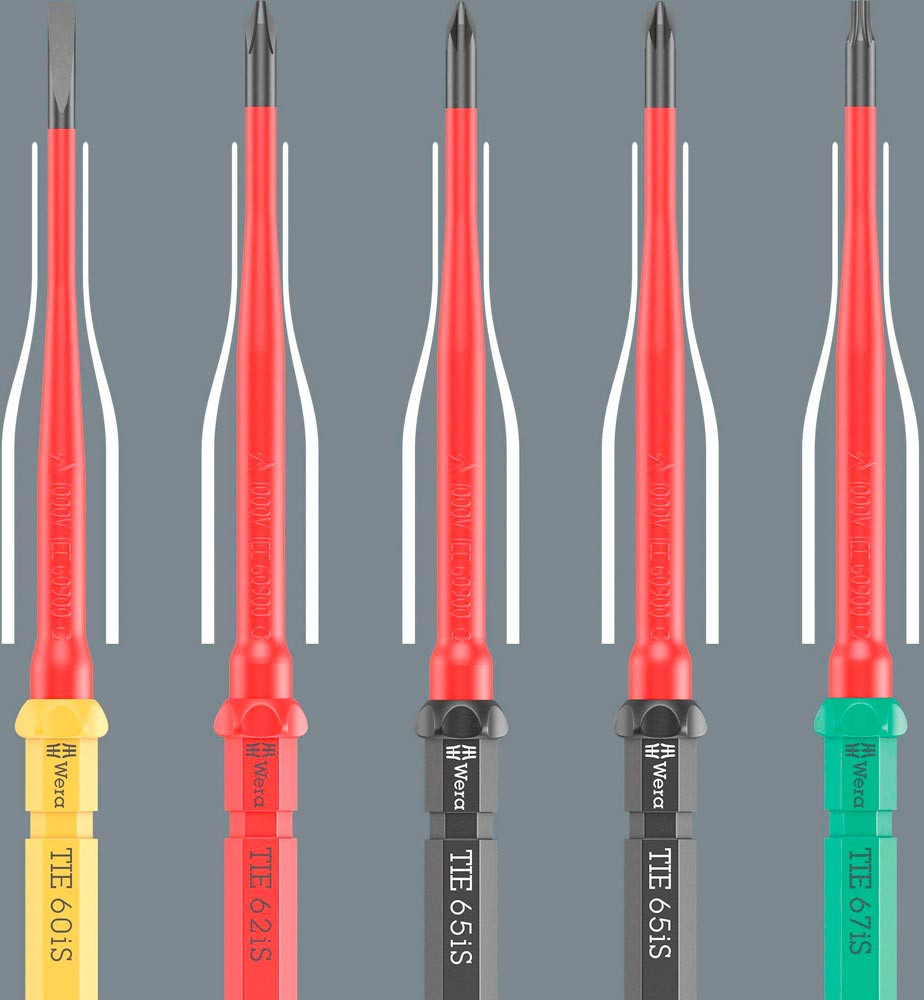 VDE Klinge für Kraftform Kompakt Griff-/Wechselklingensystem. Kombinationsprofil Schlitz und Phillips · vor allem zur Verwendung bei Reihenklemmen · Sicherungskästen · Schaltern · Relais. Blitzschneller Austausch der Klinge ohne Sonderwerkzeug. Stückgeprüfte Werkzeuge gem. IEC 60900. Stückprüfung bei 10.000 V für sicheres Arbeiten bei der zugelassenen Spannung von 1.000 V. Reduzierter Klingendurchmesser mit integrierter Schutzisolation · so können tiefliegende Schraub- und Federelemente erreicht und betätigt werden. Die Wera Black Point-Spitze bietet Passgenauigkeit und optimierten Korrosionsschutz. Mit Werkzeugfinder Take it easy: Farbkennzeichnung nach Profilen sowie aufgelaserter Größenangabe. Der Sechskantabrollschutz verhindert das unbeabsichtigte Wegrollen der Klinge.