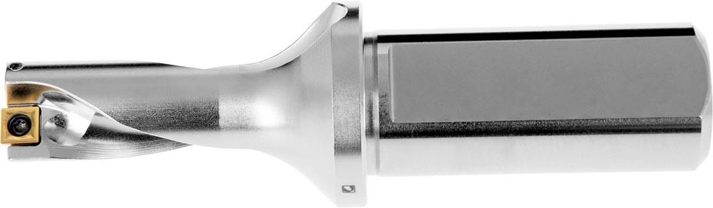 Wendeschneidplattenbohrer zum einsetzen von einer XPET 0502.. Wendeschneidplatten als Zentrumschneide und einer SCET 0502.. Wendeschneidplatte als Außenschneide · Bohrdurchmesser 0.656'' · mit einem 1.000'' abgeflachten Zylinderschaft nach ISO 9766 und Innenkühlung für maximale Bohrtiefen bis 2 x D