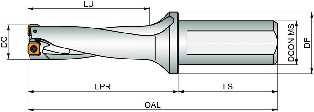 Wendeschneidplattenbohrer zum einsetzen von einer XPET 0602.. Wendeschneidplatten als Zentrumschneide und einer SCET 0602.. Wendeschneidplatte als Außenschneide · Bohrdurchmesser 0.787'' · mit einem 1.000'' abgeflachten Zylinderschaft nach ISO 9766 und Innenkühlung für maximale Bohrtiefen bis 3 x D