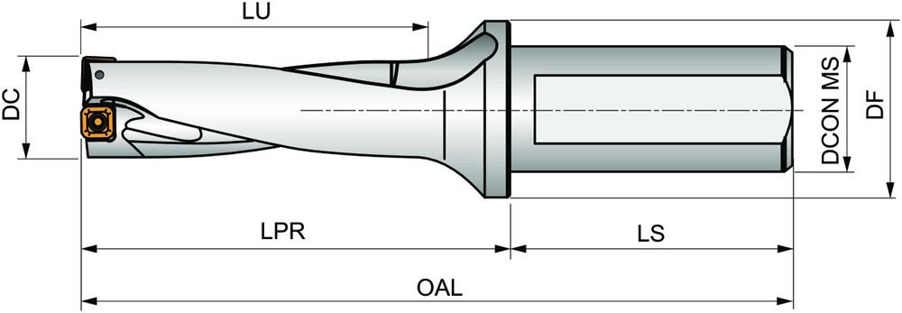 Wendeschneidplattenbohrer zum einsetzen von einer XPET 0602.. Wendeschneidplatten als Zentrumschneide und einer SCET 0602.. Wendeschneidplatte als Außenschneide · Bohrdurchmesser 20.5mm in Kombination mit EP253253 · geeignet für eine radiale Verstellung von -0.10 bis +0.50mm · mit einem 25mm abgeflachten Zylinderschaft nach ISO 9766 und Innenkühlung für maximale Bohrtiefen bis 3 x D