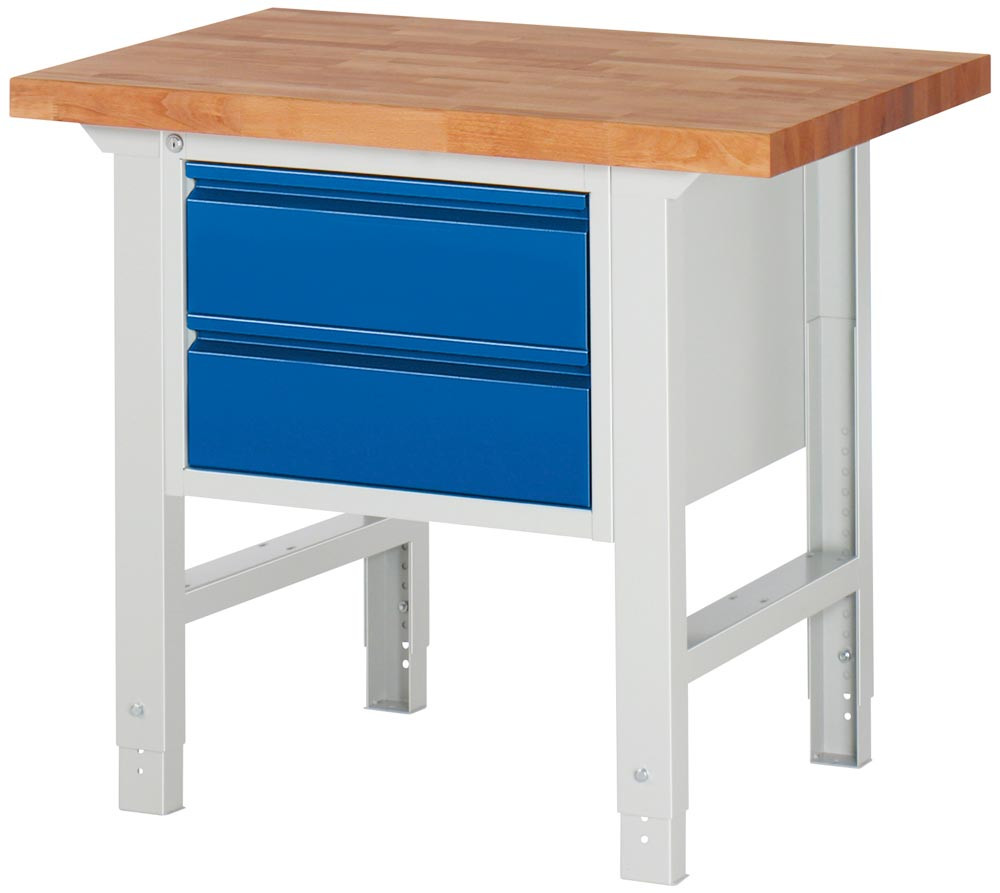 Werkbank, BxTxH 1000x700x790-1140 mm, Platte Buche 40 mm 40 mm, 2 Schubladen 180 mm, RAL 7035/5010 EP551333