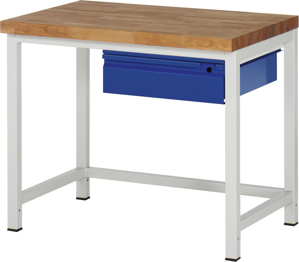 Werkbank, BxTxH 750x700x840 mm, Platte Buche 40 mm, 1 Schublade 150 mm, RAL 7035/5010 EP531030