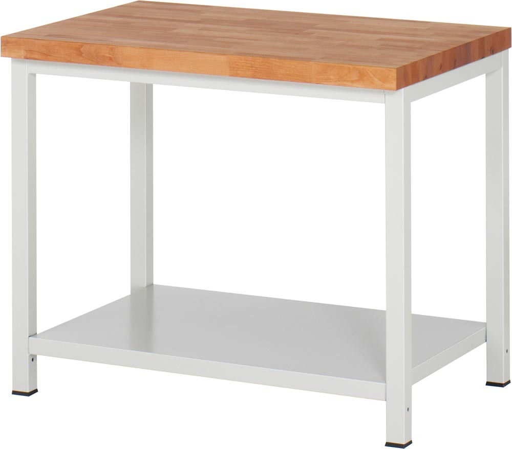 Werkbank, BxTxH 1000x700x840 mm, Platte Buche 40 mm, inkl. Stahlblech-Ablageboden, RAL 7035