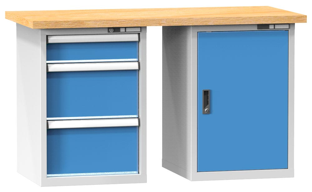 Werkbank, BxTxH 1500x800x880mm, 2 Blöcke, 1 Tür, 3 Schubladen 150, 2x 300 mm, Traglast 1100 kg, RAL 7035/5012 EP557698