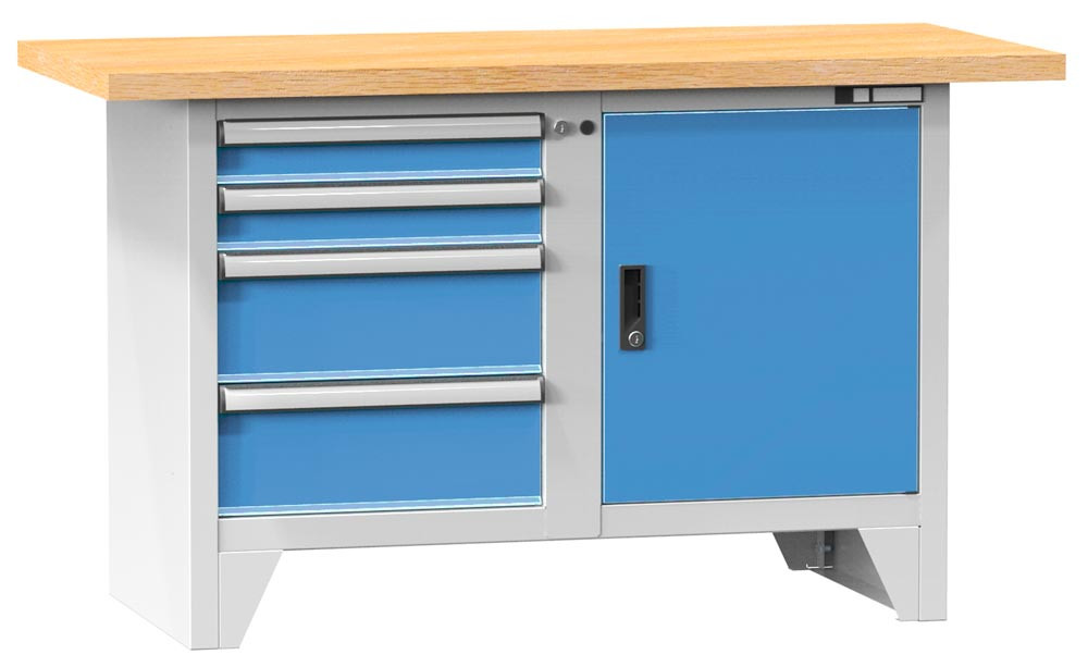 Werkbank, BxTxH 1500x700x880mm, 2 Module, 4 Schubladen 2x100, 2x200 mm, 1 Tür, 1 Boden, Traglast 800 kg, RAL 7035/5012 EP557705