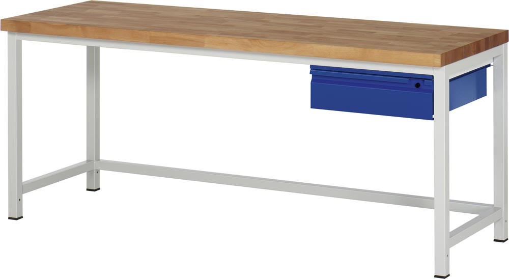 Werkbank, BxTxH 750x700x840 mm, Platte Buche 40 mm, 1 Schublade 150 mm, RAL 7035/5010 EP531030