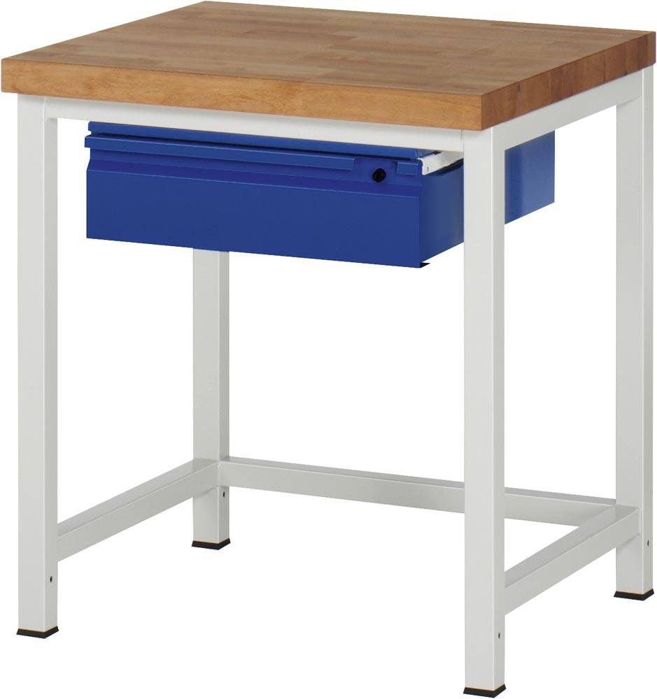 Werkbank, BxTxH 750x700x840 mm, Platte Buche 40 mm, 1 Schublade 150 mm, RAL 7035/5010 EP531030