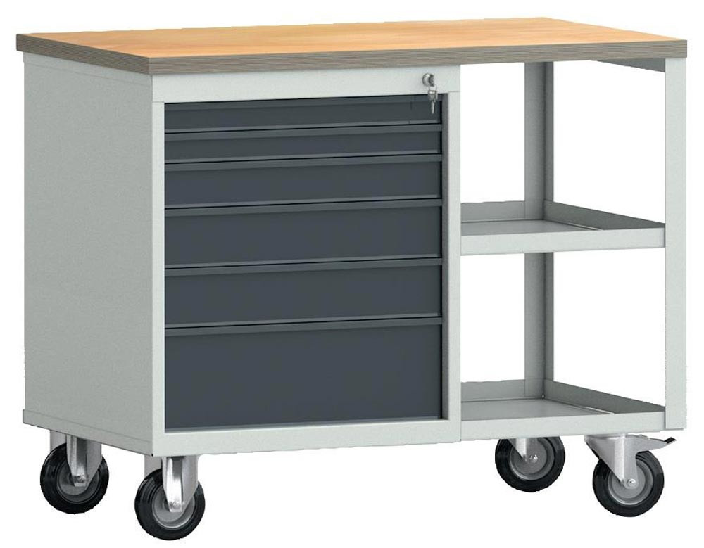 Werkbank PW 700 B1000xT620xH805mm Buche Multiplex lichtgrau / anthrazitgrau 6 Schubl.