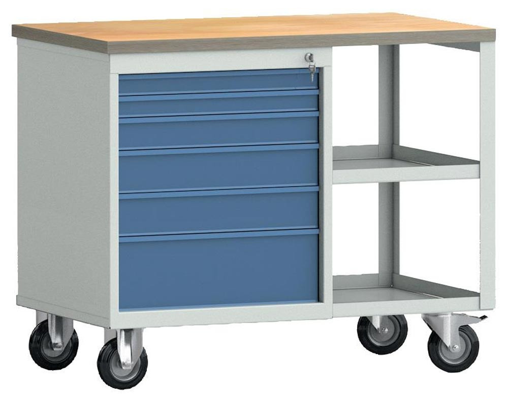 Werkbank PW 700 B1000xT620xH805mm Buche Multiplex lichtgrau / enzianblau 6 Schubl. E6461410
