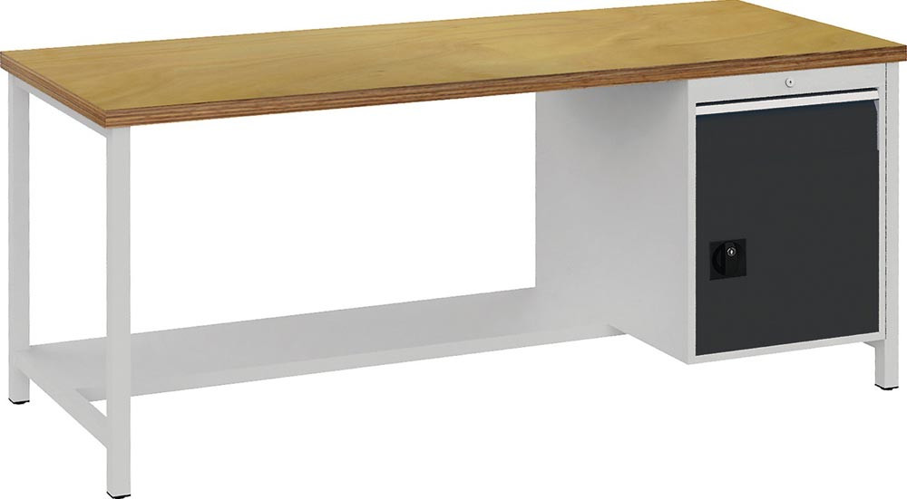 Werkbank anthrazitgrau lichtgrau B2000xH859xT750 mm Buche Multiplex 40 mm 1 Schubladen 1 Türen