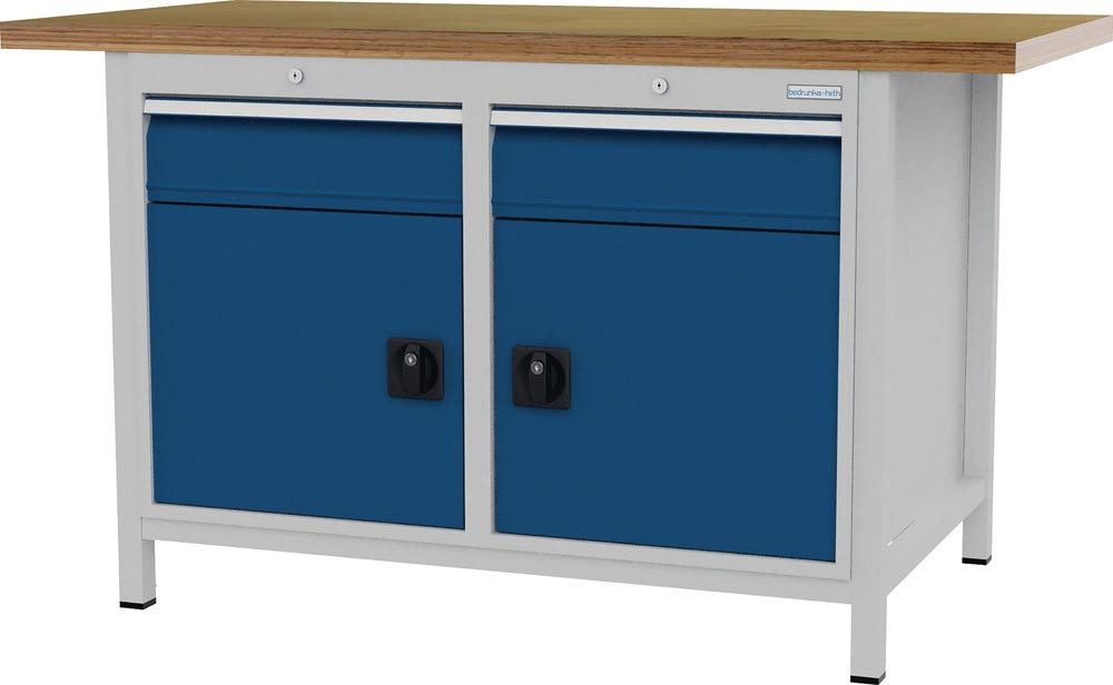 Werkbank signalblau lichtgrau B1500xH859xT750 mm Buche Multiplex 40 mm 2 Schubladen 2 Türen E6461363