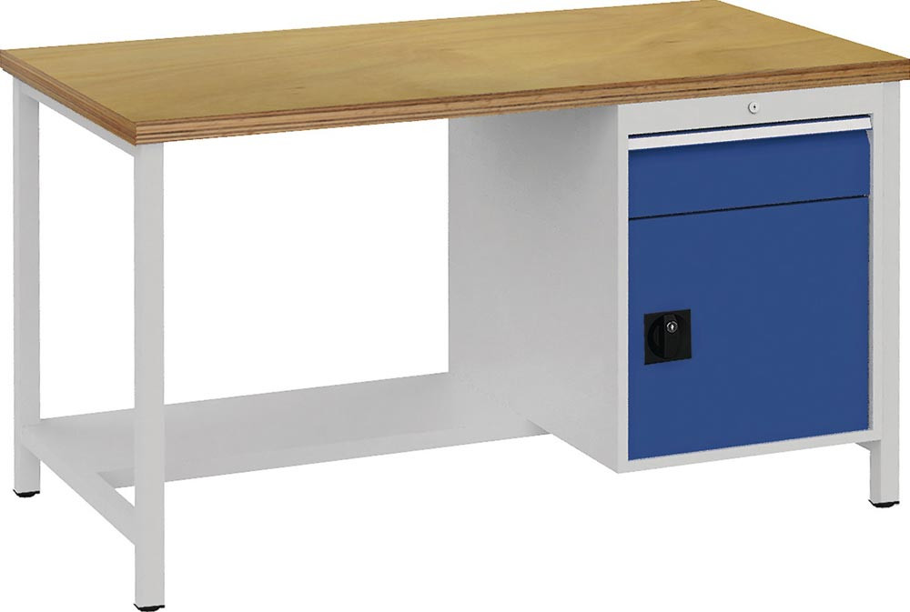 Werkbank signalblau lichtgrau B1500xH859xT750 mm Buche Multiplex 40 mm 1 Schubladen 1 Türen E6461361