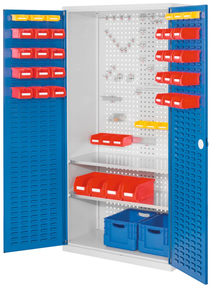 Werkzeugschrank, Türen mit Schlitzplatten, BxTxH 1000x410x1950 mm, 2 Fachböden, RAL 7035/5010 EP521311