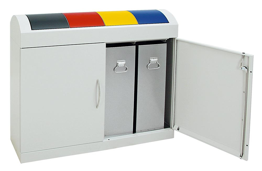 Werstoffsammelstation, 4x45 Liter, BxTxH 1100x320x975 mm, Korpus RAL 7035 lichtgrau, Schwingdeckel blau+gelb+anthrazit+rot EP511177
