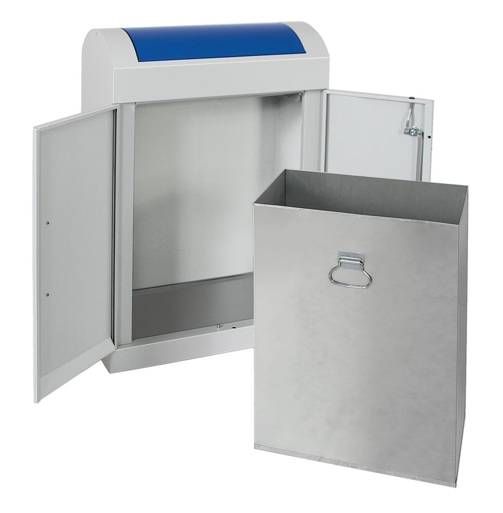 Werstoffsammelstation, Volumen 1x90 Liter, BxTxH 620x320x975 mm, Korpus RAL 7035 lichtgrau, Schwingdeckel blau EP530668
