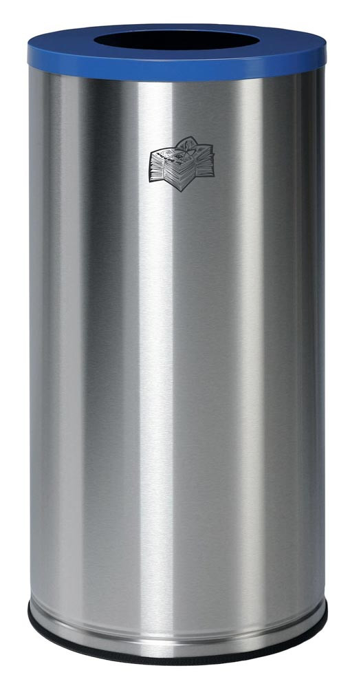 Wertstoffsammler, Edelstahl, Volumen 70 Liter, Durchm. 355 mm, Höhe 700 mm, Behälter eisenglimmer, Deckel enzianblau