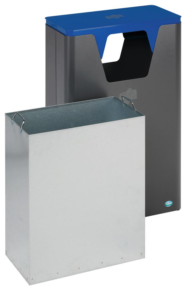 Wertstoffsammler, Stahlblech, Volumen 60 Liter, abnehmbarer Aufsatz, BxTxH 500x250x825 mm, Korpus eisenglimmer, Aufsatz blau