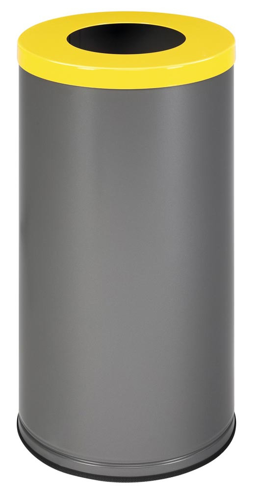 Wertstoffsammler, Stahlblech, Volumen 70 Liter, Durchm. 355 mm, Höhe 700 mm, Behälter eisenglimmer, Deckel gelb EP558239