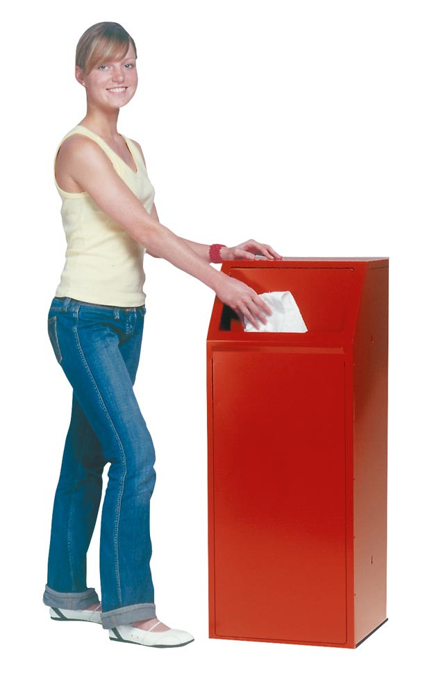 ∙ Aus verzinktem Stahlblech, pulverbeschichtet ∙ Zur Innen- und Außenaufstellung geeignet ∙ Selbstschließende Einwurfklappe ∙ Geruchshemmend ∙ Praktische Klapptür ∙ Verzinkter, herausnehmbarer Innenbehälter mit 2 Griffen